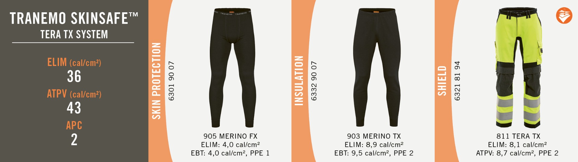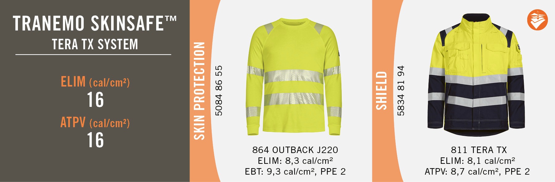 Tranemo ensaya todas las prendas nuevas y re-ensayará los sistemas Tranemo Skinsafe™ y prendas almacenadas según la norma actualizada EN 61482-2 para incluir tanto los valores ELIM como los ATPV/ETB.